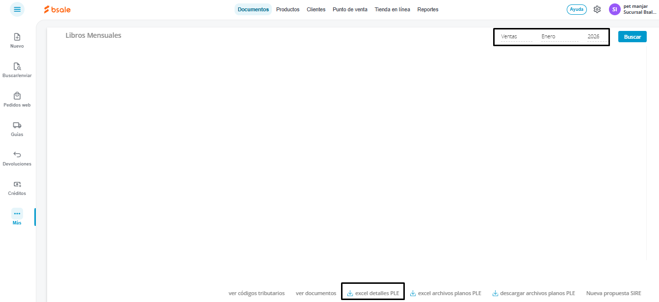 Puedes dar clic en la pestaña del mes para filtrar el periodo que necesitas, lo mismo con el año y luego darle clic en Buscar. Luego, si le das clic donde dice Excel detalles PLE, exportarás el archivo Excel con todos los comprobantes de pago electrónicos emitidos en el periodo filtrado.
