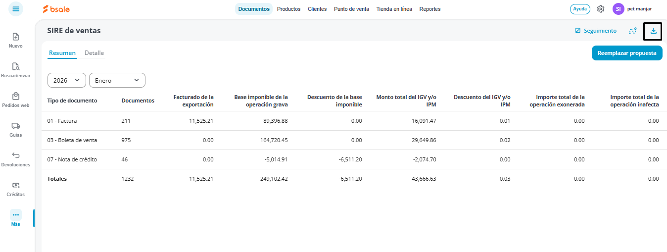 En el siguiente instructivo te enseñaremos a cómo Descargar el libro de ventas en Bsale. La interfaz de resumen de venta multi moneda se podrá descargar de acuerdo a los formatos homologados que tiene Sunat .xls, .txt. Te enseñamos a continuación: