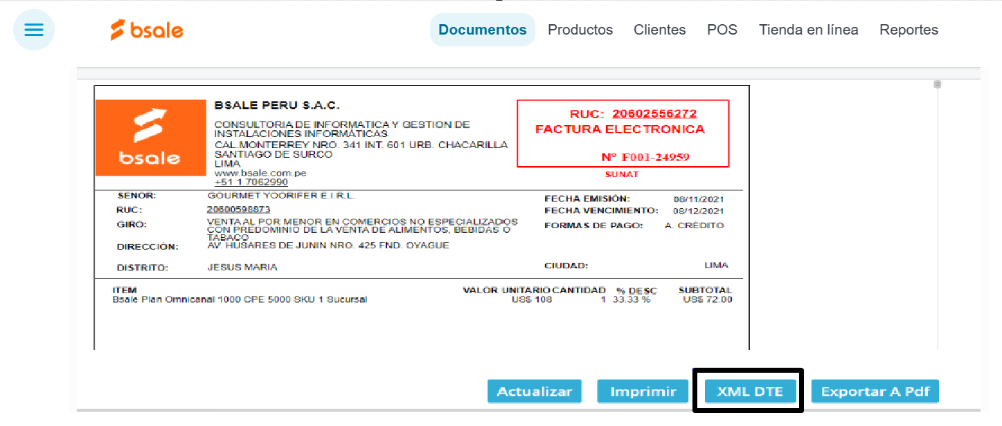 Se desplegará el detalle en la siguiente pantalla, presiona el botón XML DTE y descargará el archivo .zip.