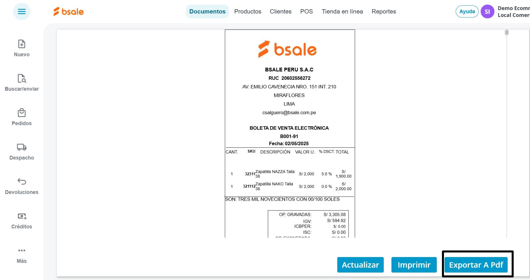 En esta misma ventana también puede descargar el PDF de un comprobante de pago: