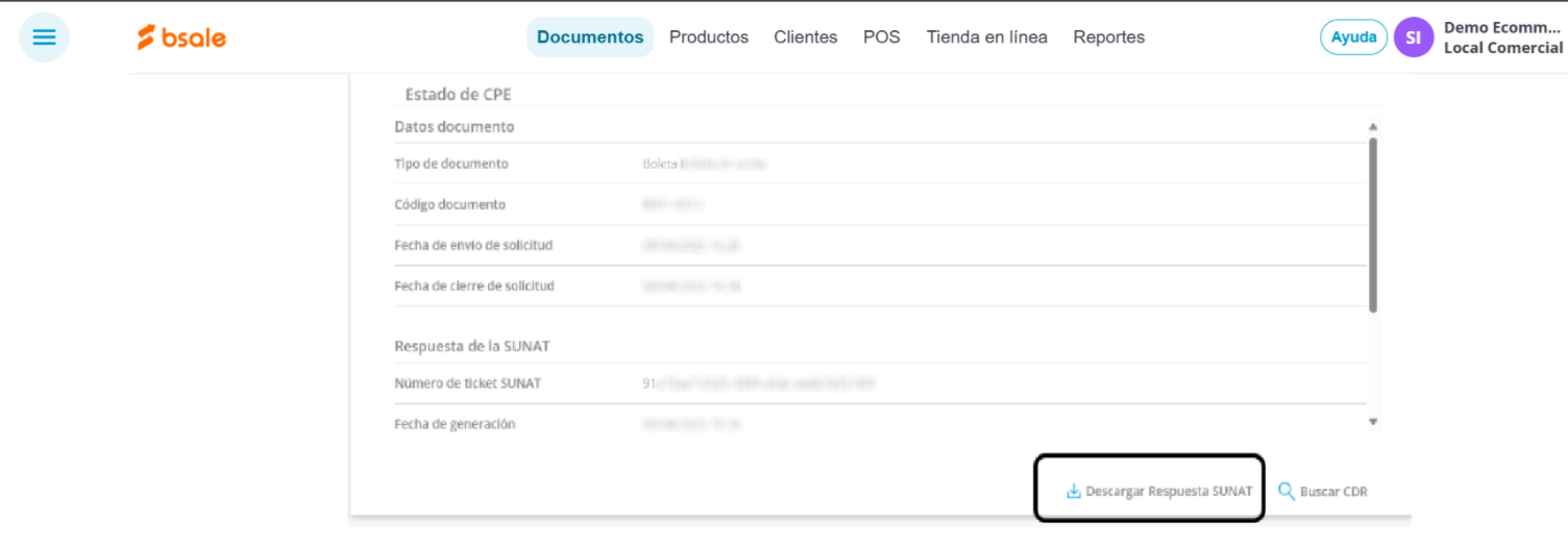 En la ventana que se deplegó, haz clic en Descargar respuesta SUNAT en la parte inferior derecha de la pantalla. Y así podrás obtener la CDR del comprobante electrónico.