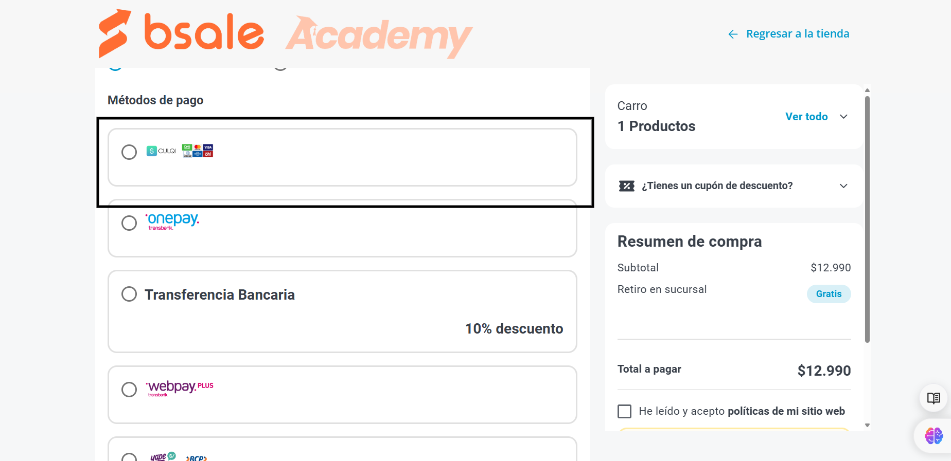 Listo, ahora nuestra forma de pago ya aparecerá en el checkout de tu página web.
