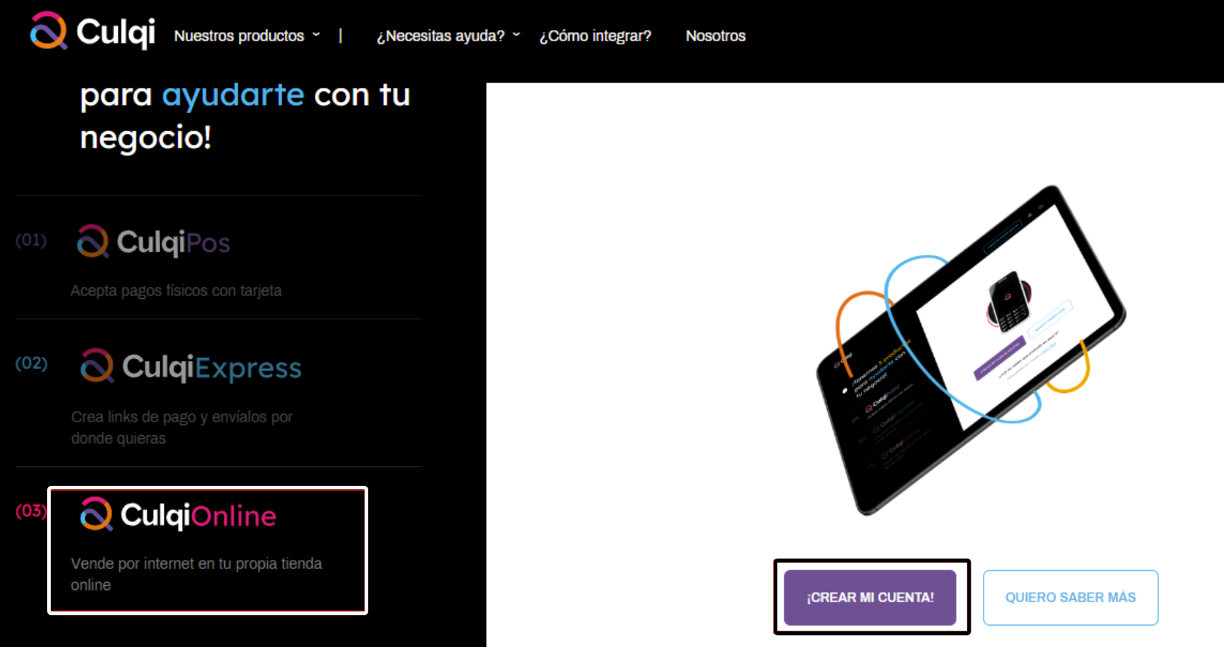 1. Ingresa al siguiente enlace: https://culqi.com/productos/