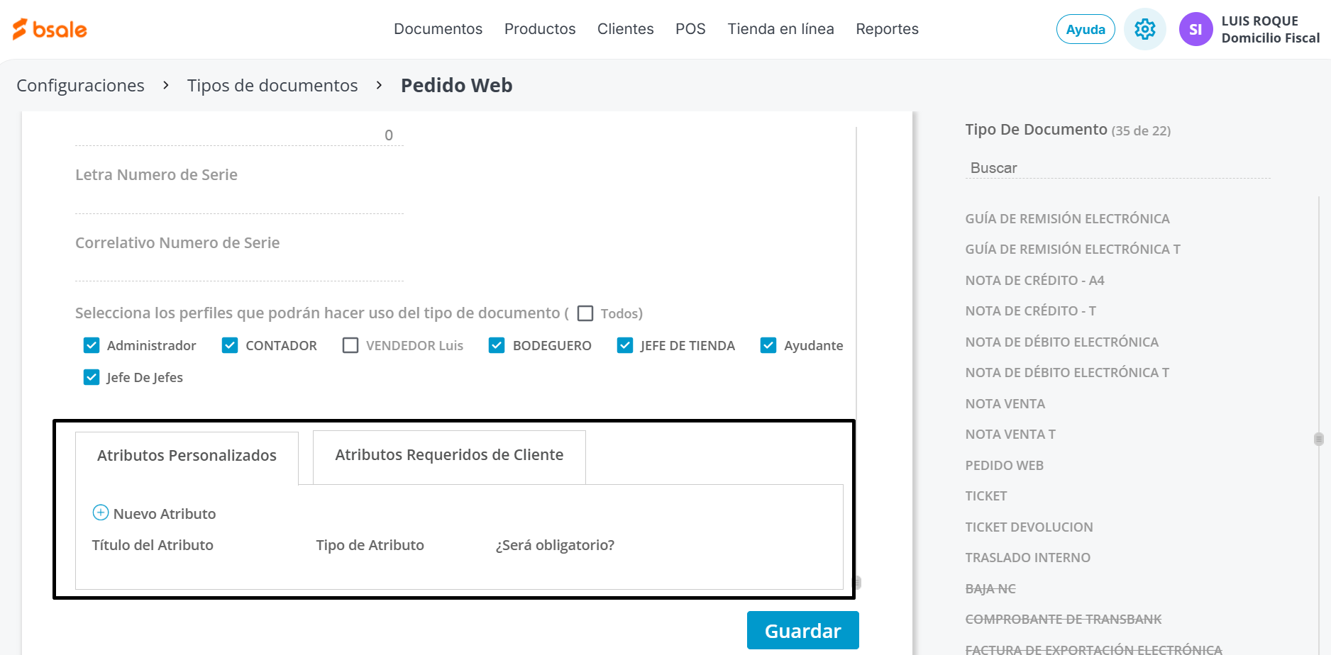 3. El tipo de documento asociado a los pedidos tiene atributos obligatorios no enviados por Mercado Libre: