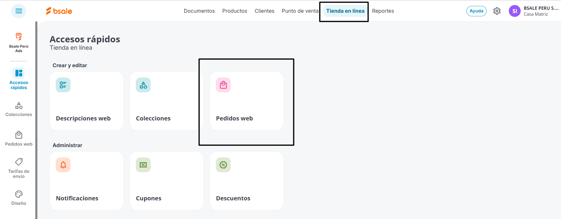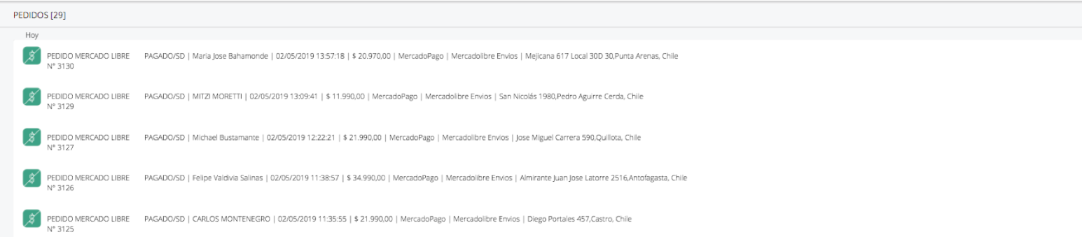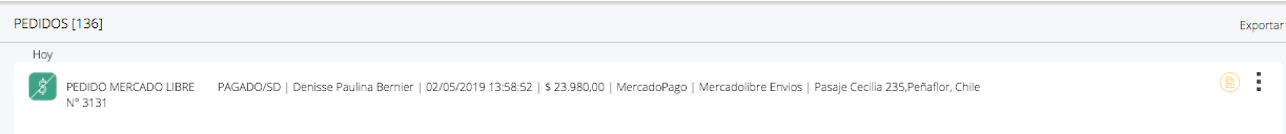 Una vez se genere un pedido desde Mercado Libre a Bsale, podrás verlo desde la pantalla de Pedidos Web: