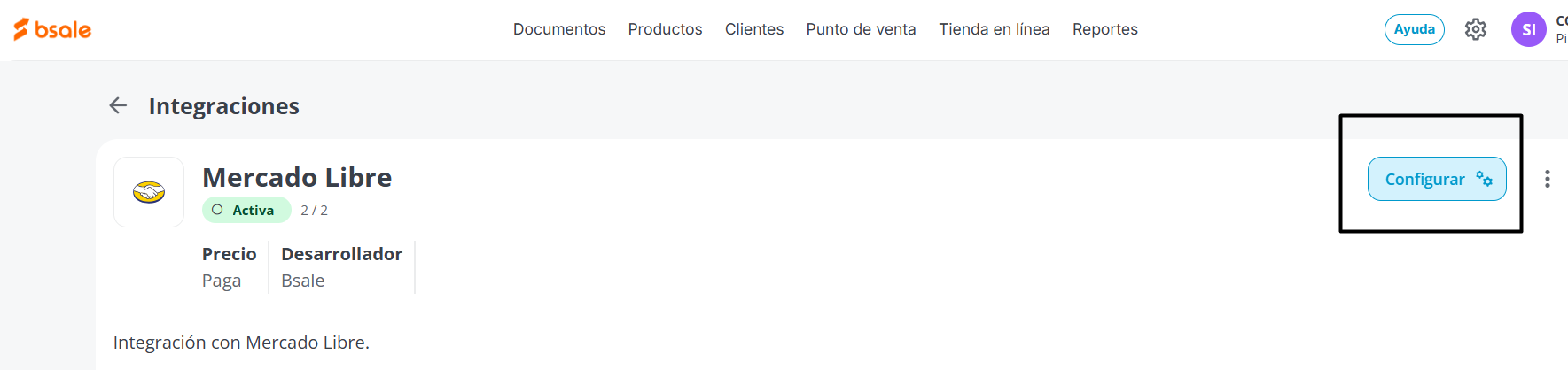 El documento que se emitirá será el que tengas configurado en la siguiente ruta: Configuración, Integraciones, Ver todas, Instaladas, Mercado Libre, Configurar: