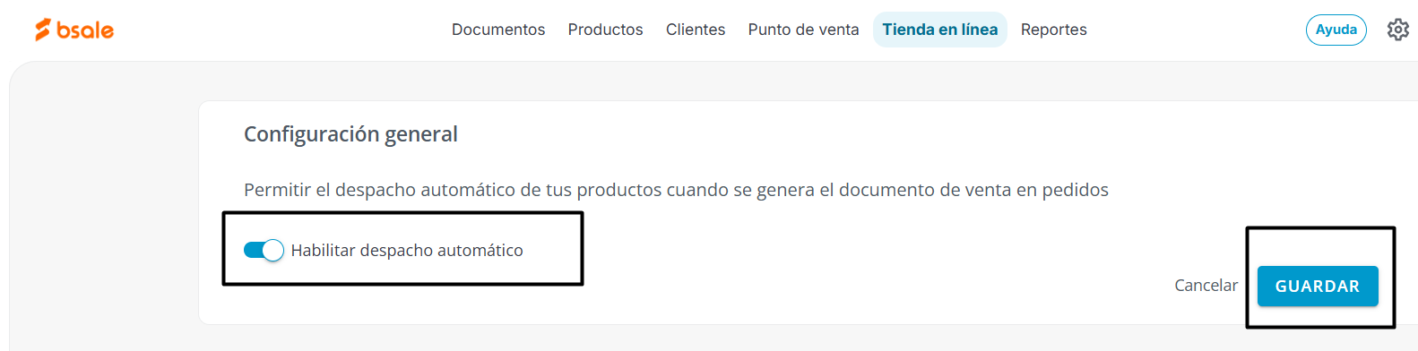 Existe la forma de que Bsale deje automáticamente el producto ''Despachado'' una vez generas la venta al pedido. Esto se habilita desde TIENDA EN LINEA --- AJUSTES --- GENERAL.