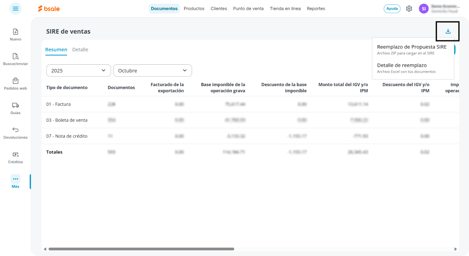 - Detalle de reemplazo: Descargar el detalle de yodos los documentos del mes seleccionado.