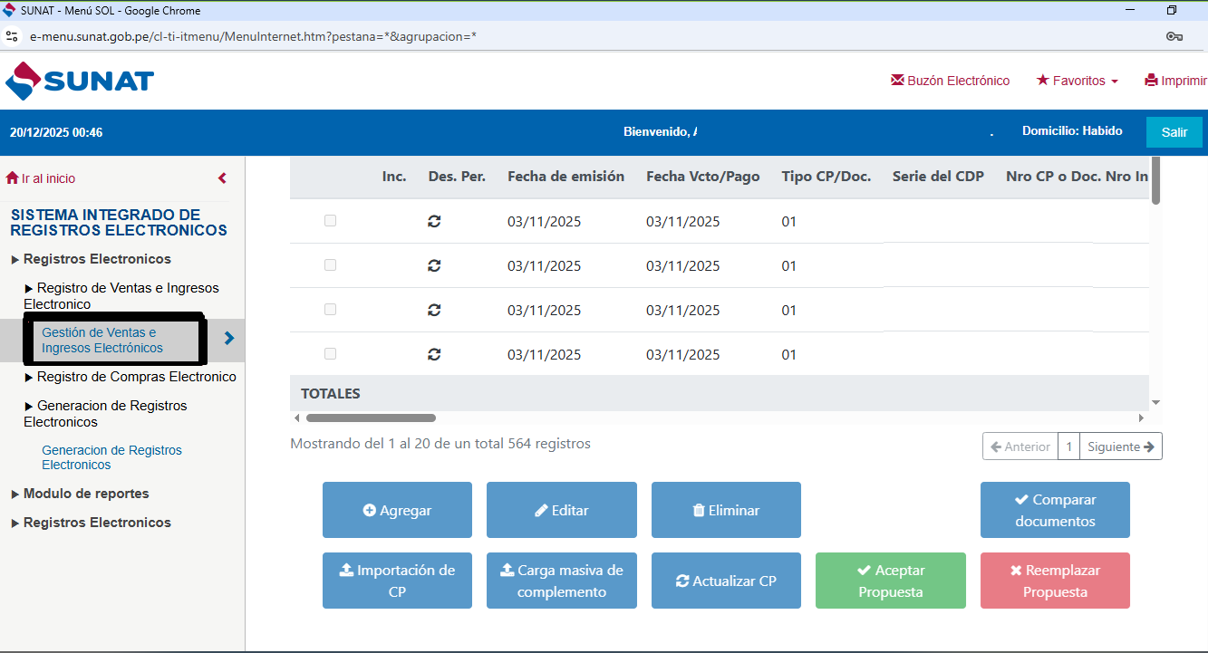 Una vez enviada la propuesta de reemplazo a SUNAT, deberás ingresar a tu cuenta y dirigirte a la opción Gestión de Ventas e Ingresos Electrónicos.