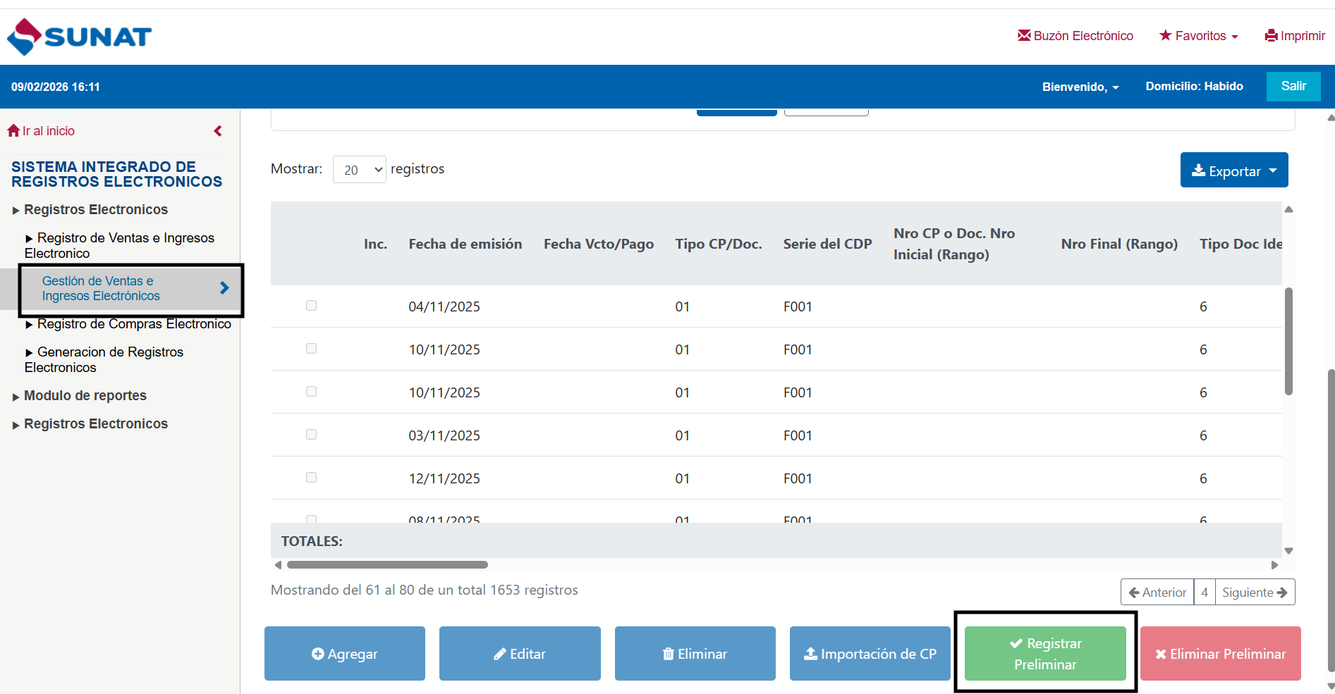 Finalmente, podrás registrar el preliminar o eliminarlo, según corresponda.