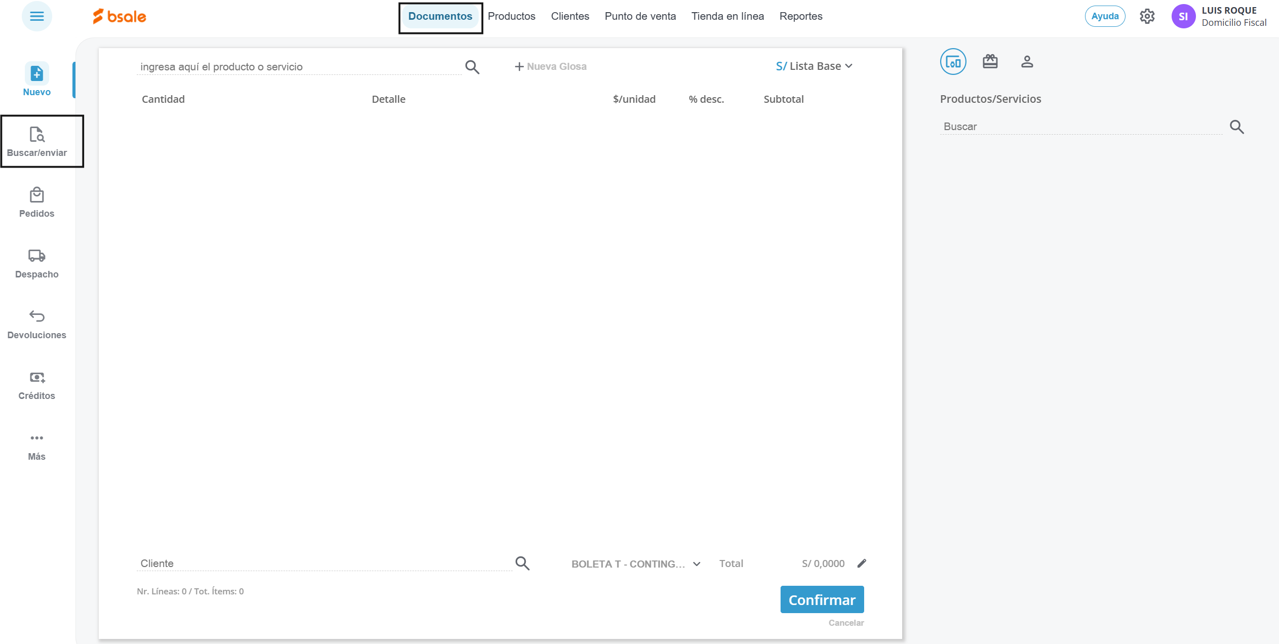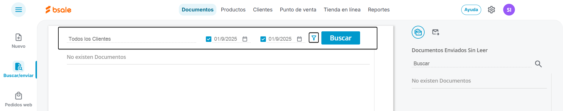 Hacemos clic en el menú Documentos y luego en Buscar/Enviar.