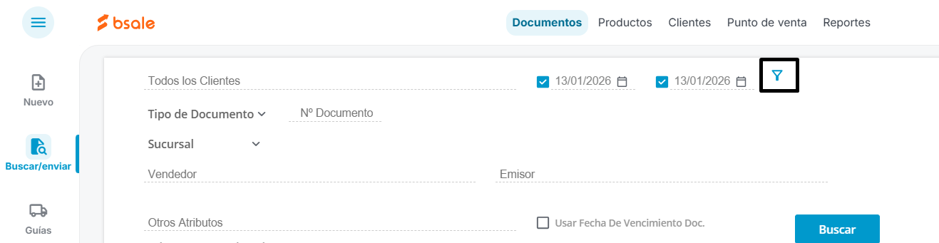 c) Filtros adicionales: desglosa otras opciones que te ayudarán a filtrar aún más para poder encontrar un documento en específico. Está simbolizado por un icono de embudo y se encuentra entre el rango de tiempo y el botón Buscar.