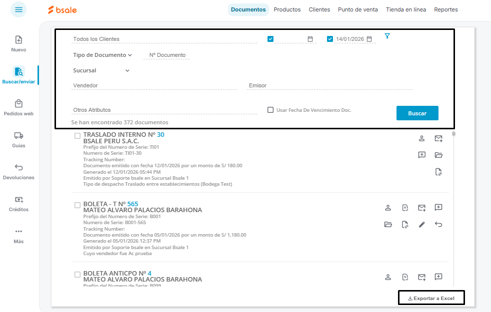 Dependiendo del filtro aplicado y los documentos mostrados, podrás exportar la información de los mismos con el botón Exportar a Excel.